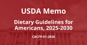 USDA released a memo outlining some of the key updates included in the 2020-2030 DGAs. While USDA emphasizes that CACFP and SFSP operators familiarize themselves with the recommendations, there are no immediate changes to program requirements. Operators must continue to follow current CACFP and SFSP meal pattern requirements