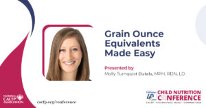 Learn about three easy-to-use tools that make crediting grains in the CACFP quick and simple. Participate in hands-on practice using each tool and get an idea of which one will work best for you. Leave with the skills and confidence needed to determine the minimum serving size for any creditable grain you want to serve in your program.