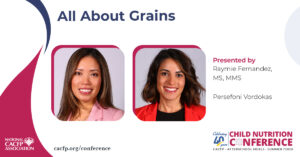 Let’s talk about grains! Learn what are creditable and non-creditable grains in the CACFP, how to identify whole grain-rich and how to calculate grain ounce equivalents in recipes and pre-packaged grain products to meet CACFP grain requirements for the age(s) you are serving.Â