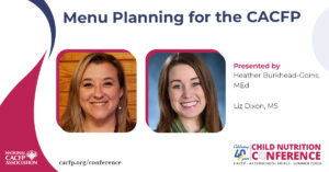 Develop meal planning techniques that can be used to serve healthy and appealing meals and snacks that meet CACFP and preschool meal pattern requirements. Learn how to accommodate food allergies, incorporate multi-cultural recipes and locally-sourced foods, develop strategies for creating custom menus and go home with menus you can use immediately or as inspiration.Â