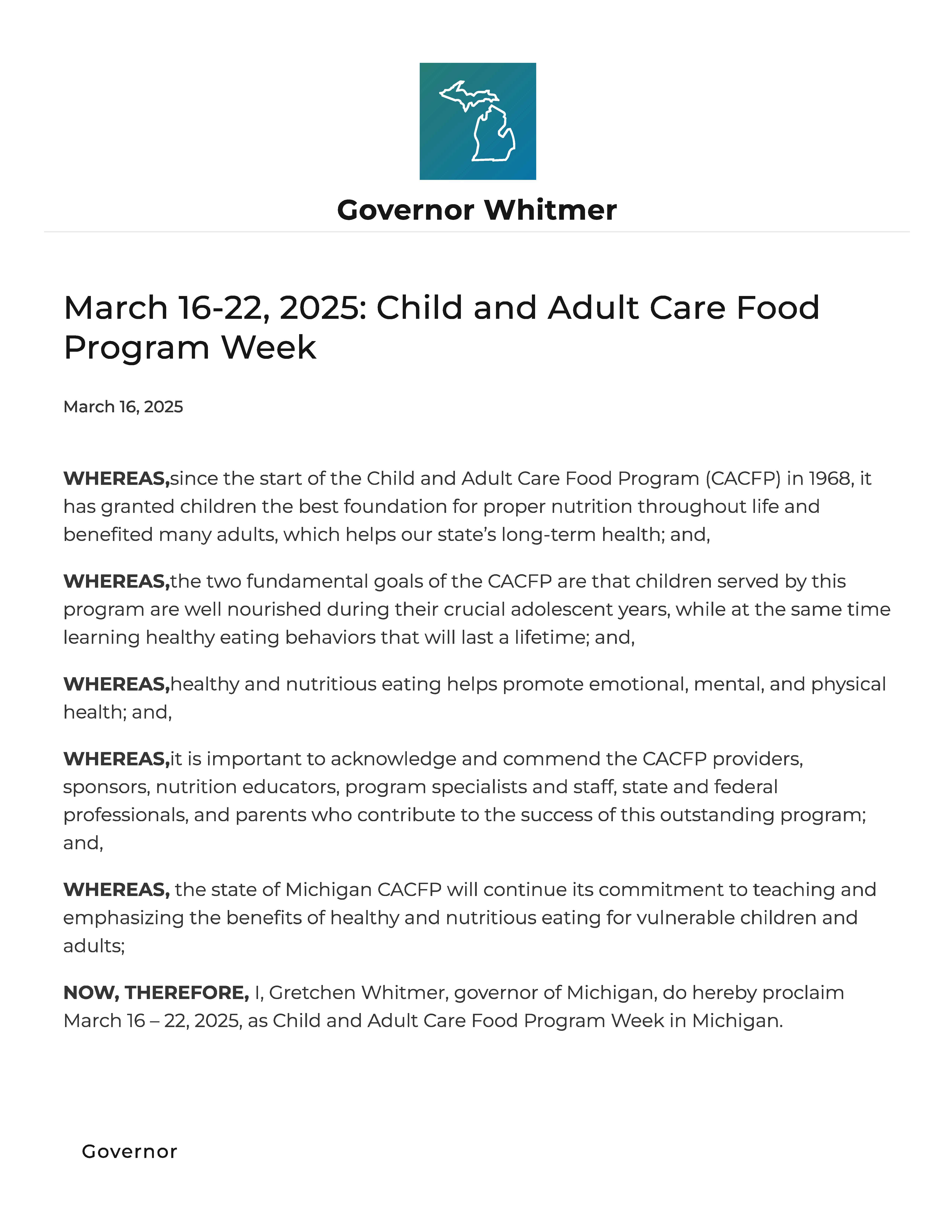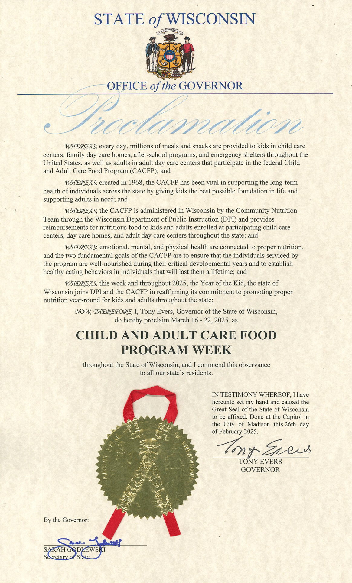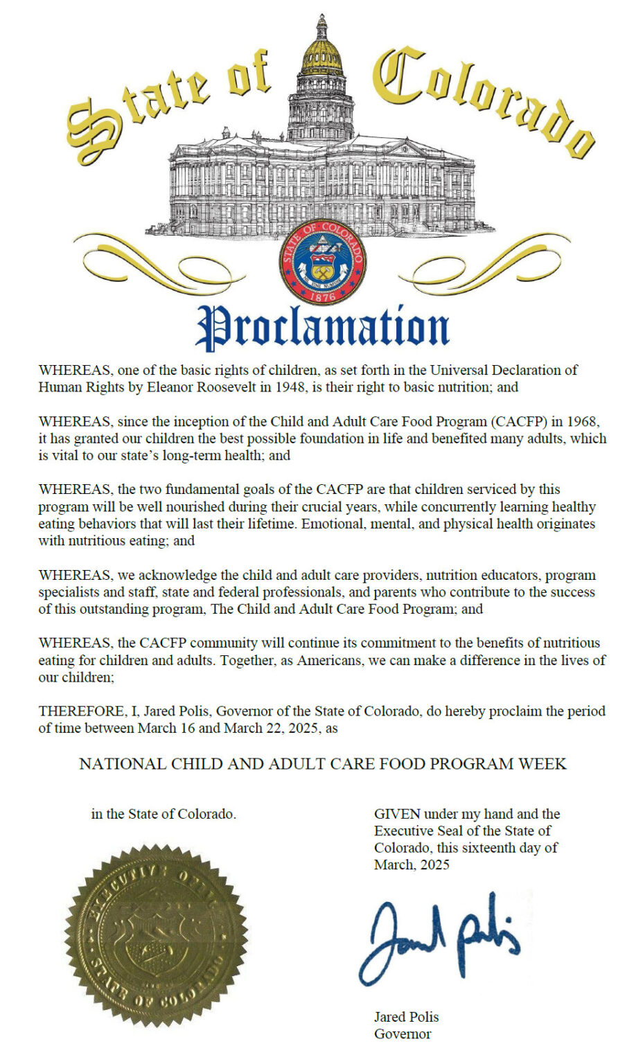 CACFP Week is a national education and information campaign sponsored annually the third week of March by the National CACFP Sponsors Association. The campaign is designed to raise awareness of how the USDA's Child and Adult Care Food Program works to combat hunger. The CACFP brings healthy foods to tables across the country for children in child care centers, homes, and afterschool programs as well as adults in day care.