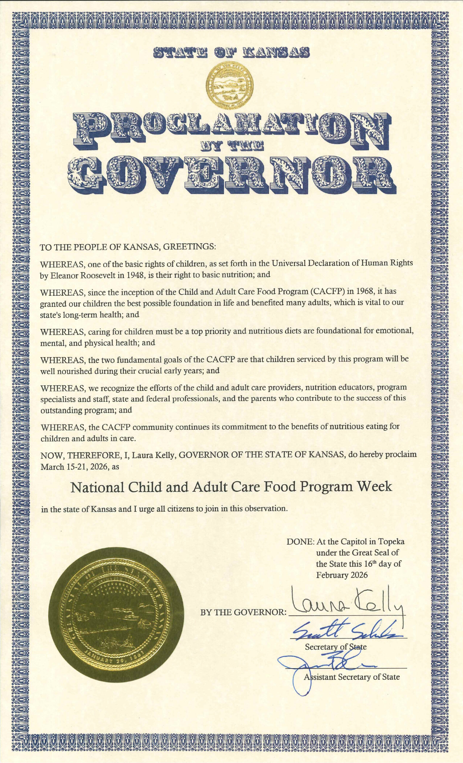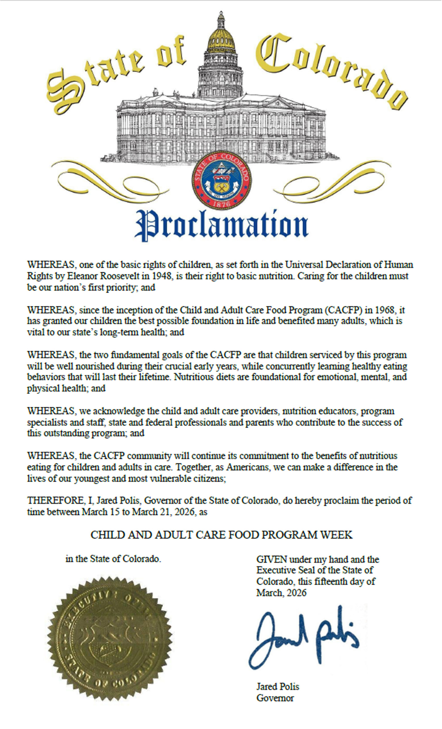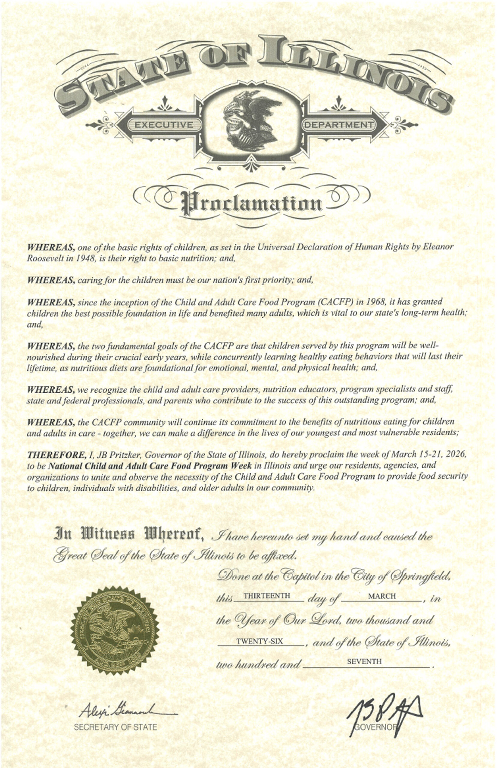 National CACFP Week is March 14-20, 2027
