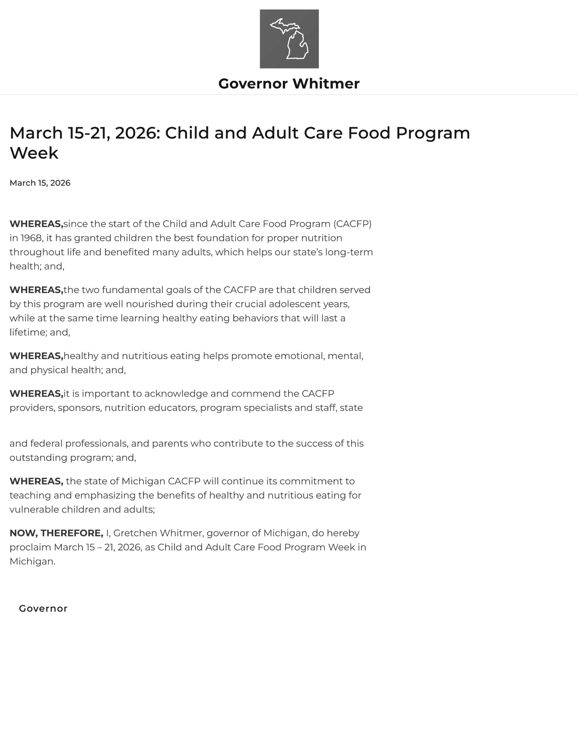 We have plenty of ways to support you in spreading the word about the CACFP. Download these templates to reach out to elected officials to request a proclamation for CACFP Week, or send a press release to your local newspaper to shine a light on what you're doing to stir up goodness in your program.